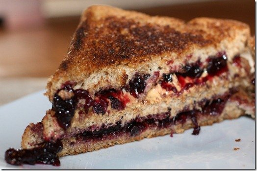- Lay down the first piece of bread. Spread with 1 TBSP of Jam, then place the next piece of bread on top. Spread with Cashew Butter, and the rest of the Jam. Place the last piece of bread on top and spread 1 tsp. of Coconut Oil on it.