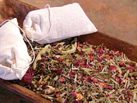 Directions: Place crystal at the bottom of the muslin bag and fill it with 3 - 4 heaping tablespoons of herbs. Close tightly and hang bag from faucet and allow hot water to run through the bag. Or place bag in bath under very warm running water. Squeeze bag to release the botanical essence. Relax and soak for minimum of 20 minutes.