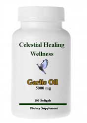 Garlic Oil - Softgels (V-Gel)Celestial Healing’s Natural Garlic Oil Softgels are one of the best herbal supplements on the market and may help maintain normal cholesterol and blood pressure levels in addition to protecting your heart. Daily use of garlic supplements has been shown to provide considerable additional health benefits. Garlic supplements has essential health benefits which derive from more than 100 sulfur compounds, which include the most well-known garlic sulfur compound: Allicin. Celestial Healing’s Natural Garlic Oil Softgels, unlike many other natural supplements on the market, is standardized to contain at least 5000 mg of Allicin per Softgel. |